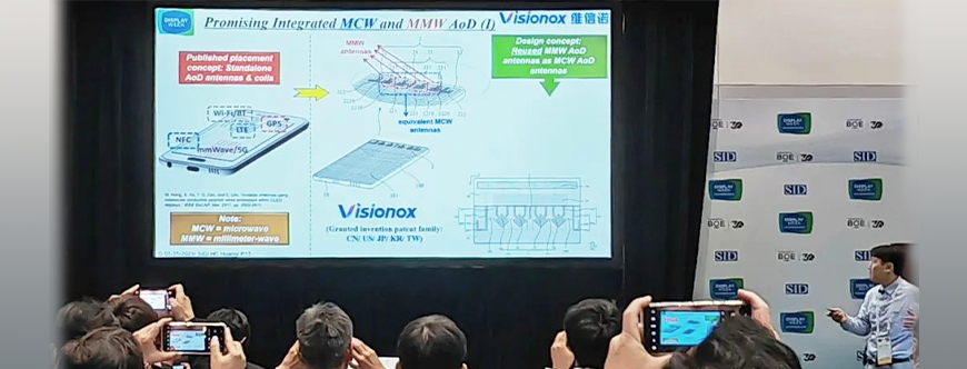 On May 21, 2023 (local time), the SID Display Week 2023 kicked off in Los Angeles. Using a bright-screen demo, Visionox presented its self-developed industry-leading dual-band dual-polarized 5G millimeter-wave antenna-on-display (AoD) integrated into an AMOLED display with a touch function. Dr. Huan-Chu Huang (IET Fellow), head of the antenna design team of Visionox, delivered a speech titled Antenna-on-Display (AoD): Role, Main Requirements, and Promising Antenna Evolution at the "On-screen Radio Frequency and Antenna Application" session.