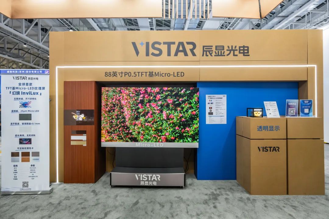 VISTAR, one of Visionox's affiliated companies, made a significant announcement at the exhibition by unveiling the world's first TFT-Based Micro-LED Texture Screen — "InviLux Mirage". This product utilizes micro-nano texture coating technology to display various texture effects such as wood grain, marble grain, and metal grain, and can support customized design for transforming just a screen to a wall, furniture, or artistic installation, seamlessly integrating those products into various scenarios. Unlike traditional screens that appear as "black blocks" after being turned off, InviLux Mirage displays vibrant images when being powered on and blends seamlessly with the background when being powered off, achieving a perfect balance between functionality and aesthetics.